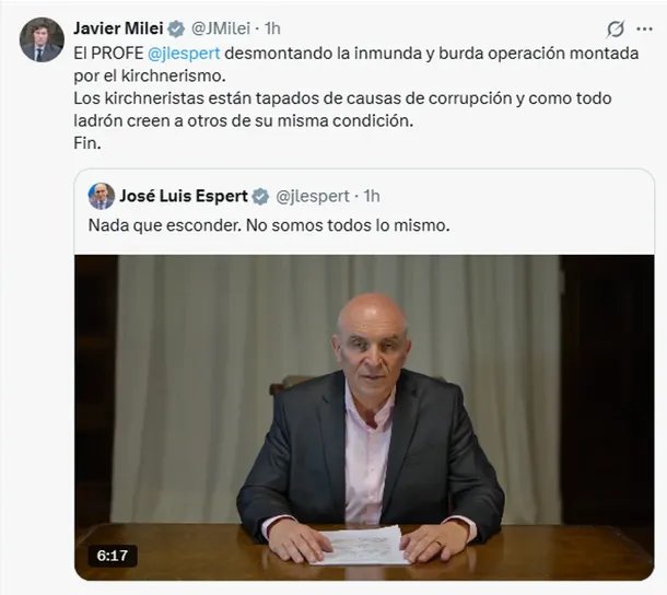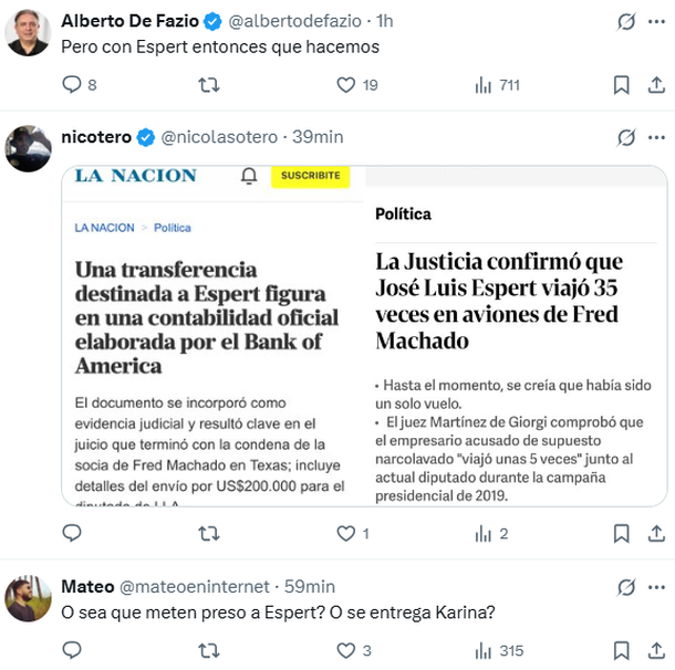 LEER MASEl mensaje completo de José Luis Espert sobre Fred Machado “Me siento en la necesidad de hablarle a todos los…