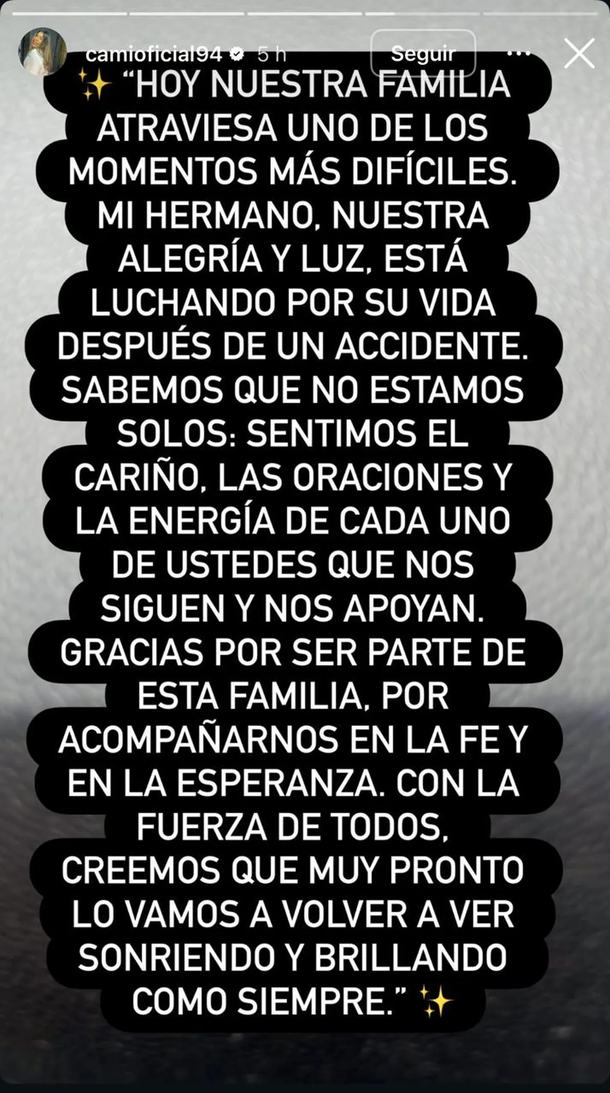 El duro descargo de Camila, la hermana de Thiago Medina, tras la operación: “Sentimos las oraciones”