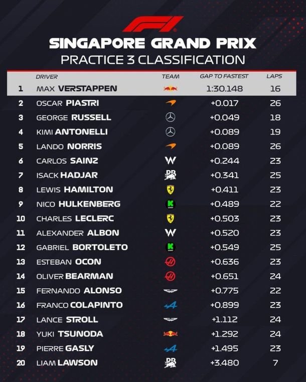 El triunfo en Marina Bay fue para George Russell (Mercedes), seguido por Max Verstappen (Red Bull) y Lando Norris (McLaren), quienes completaron el podio. La próxima cita de la Fórmula 1 será el Gran Premio de Japón, donde Colapinto buscará revancha y una mejor performance con el Alpine.