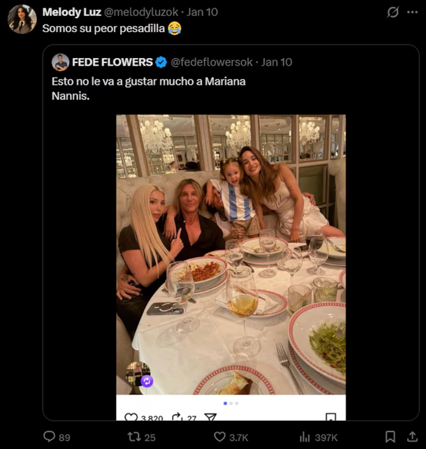 “Shhh Nicolás”, escribió en su cuenta, dando a entender que el integrante del Team Luck Ra sería quién se quede con el trofeo de esta edición, sacando por primera vez campeón a su coach.