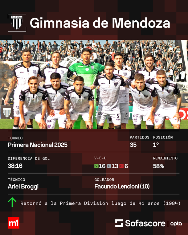 El equipo dirigido por Ariel Broggi demostró ser el más efectivo de la fase regular al registrar 17 triunfos, 12 empates y apenas 5 caídas. Gracias a este rendimiento, Gimnasia de Mendoza no solo se adjudicó la Zona B, sino que también se posicionó como el equipo con mejor registro global de toda la categoría para jugar el partido decisivo por el ascenso.