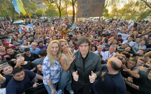 Acompañado por su hermana Karina Milei, infaltable en cuanta ocasión el Presidente hace apariciones públicas, y por la candidata a diputada nacional de La Libertad Avanza (LLA) por Corrientes, la exvedette Virginia Gallardo, hizo una breve recorrida rodeado de simpatizantes.
