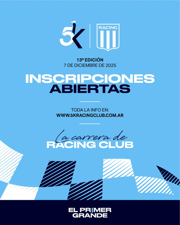 El próximo domingo 7 de diciembre de 2025 se realizarán los 5k Racing Club, un evento que convoca miles de personas y del que puede participar toda la familia. En La Academia también juegan finales en el running.