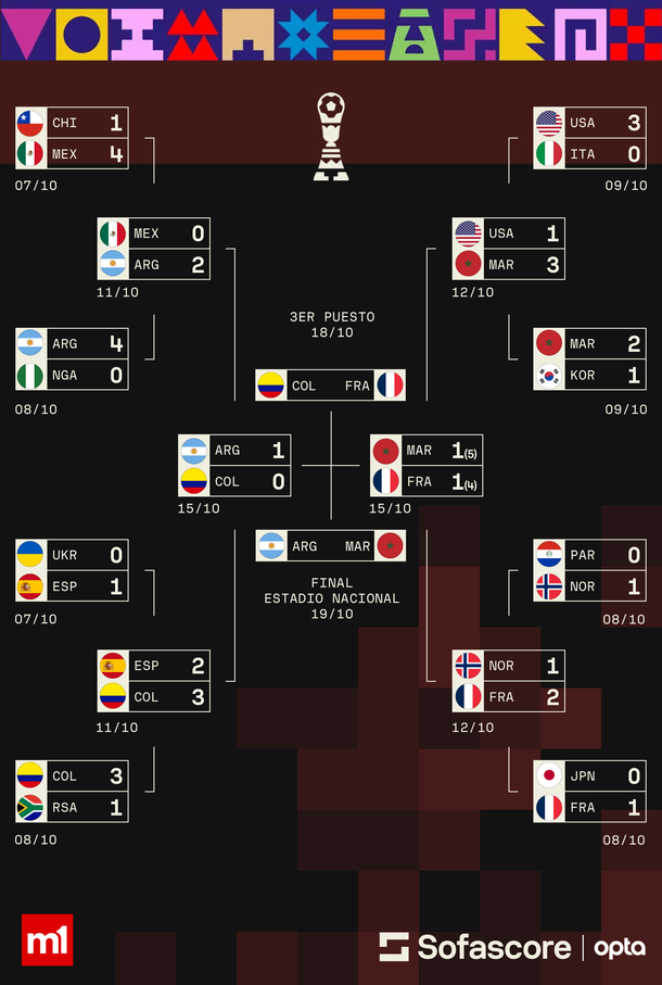 La “Albiceleste” llegaba con un rendimiento impecable: cinco triunfos en cinco partidos y una clara identidad de juego. En la fase de grupos superó a Cuba (3-1), Australia (4-1) e Italia (1-0). Luego, en los cruces directos, goleó 4-0 a Nigeria en octavos y venció 2-0 a México en cuartos, con goles de Maher Carrizo y Mateo Silvetti.