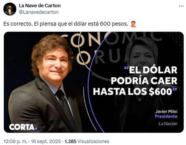 Considerando que este martes 16 de septiembre el dólar oficial se ubica en $1.480, hablar de un salario de 1.200 dólares sería lo mismo que decir $1.776.000. Un sueldo que, sin lugar a dudas, la mayoría de los argentinos no lo cobra.