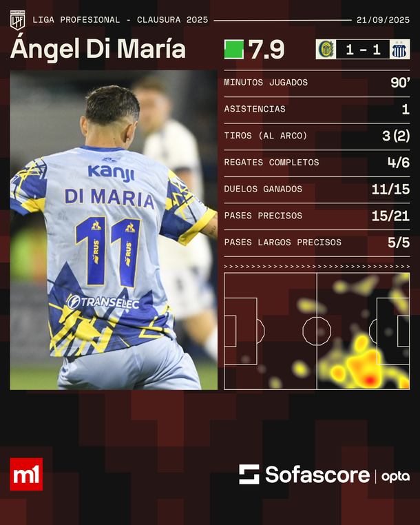 Desde la llegada de Ángel Di María, el equipo rosarino se mantiene invicto, pero no logra despegar: solo ha ganado dos partidos. Con esta nueva igualdad, queda séptimo y empieza a peligrar su lugar en zona de playoffs.