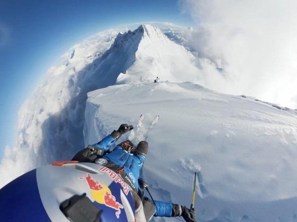 “Estoy en la cima de la montaña más alta del mundo y voy a descenderla en esquís”, sostuvo. A continuación, comenzó un descenso que pondría a prueba todos sus conocimientos y capacidades físicas. Su trayecto atravesó la temida zona de la muerte, ubicada por encima de los 8.000 metros, donde la concentración de oxígeno es apenas un tercio de la habitual y la supervivencia se vuelve extremadamente delicada.